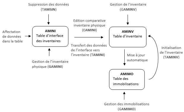 Toute modification d'enregistrements entraîne la modification automatique de la fiche d'immobilisation (GAMIMO) si la gestion de l'inventaire est activée.