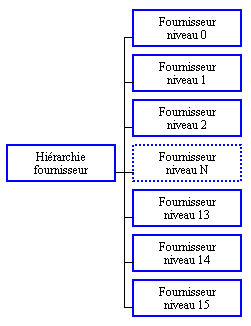 Informations des niveaux 0, 1, 2, 3, 4, 5, 6, 7, 8, 9, 10, 11, 12, 13, 14 de la hiérarchie fournisseurs.