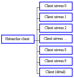 Informations des niveaux 0 à 9 (n) de la famille clients.