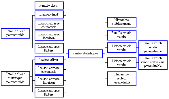 Informations familles/hiérarchies de l'environnement des statistiques de ventes