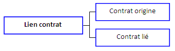 Informations : Etablissement, Type de lien, Classe, numéro, sous-numéro, numéro interne et établissement du contrat origine, Domaine, classe, numéro, sous-numéro, numéro interne et établissement du contrat lié, Ligne liée.