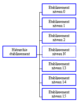 Informations des niveaux 0 à 14 de la hiérarchie des établissements.