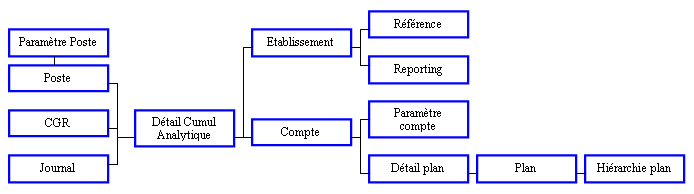 Informations : Compte, Poste, CGR, Journal, Type du cumul, Etablissement, Mois du cumul par CGR au format date et base, Intitulé du mois du cumul, Année, Trimestre et Mois du cumul par CGR, Débit - Crédit et Crédit - Débit en devise de référence et en devise reporting, Débit et Crédit en devise de référence et en devise reporting, Etat, Nature, Origine.