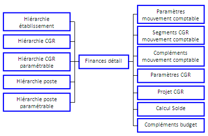 Vous trouverez ci-dessous la description de chaque vue du métier "Socle Finances Détail" :