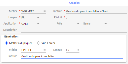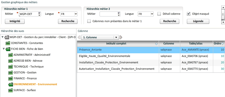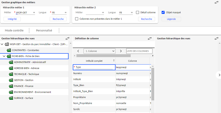 - le critère "Paramètre 3" représente la vue de rattachement : FICHE-BIEN ;