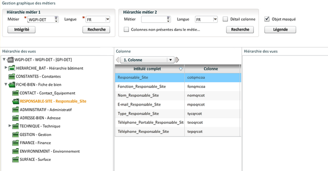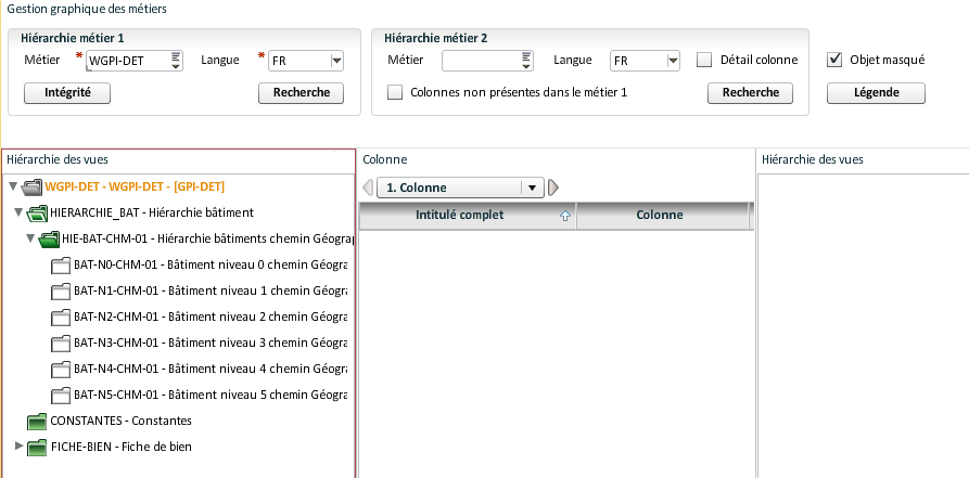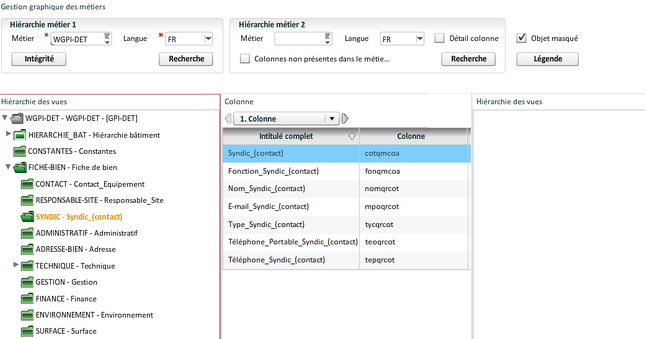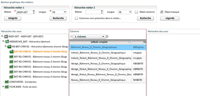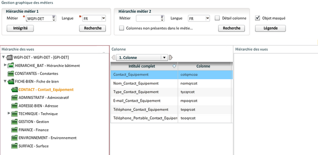 - "Modification des colonnes du métier" pour déplacer les colonnes de la vue de niveau vers la vue principale :