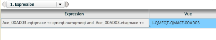 Recherche de l'expression sous la gestion des Jointures pour le métier traité, en notant dans l'expression : %Ace_00AD03%