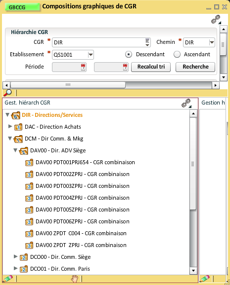 Nous allons maintenant intégrer les hiérarchies de CGR. Cet exercice peut être répéter autant de fois qu'il y a de hiérarchies à utiliser dans le reporting. Cela varie en fonction du nombre de segments et du nombre de chemins (certains segments ne nécessitent pas de hiérarchie dans le reporting, certains segments peuvent appartenir à plusieurs hiérarchies (chemin)).