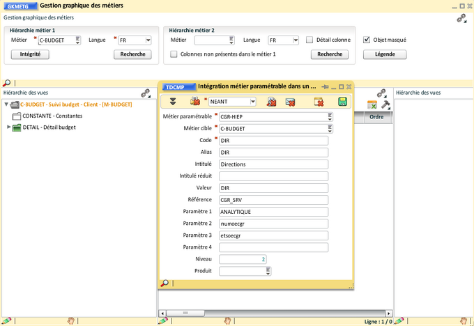 Nous allons intégrer le métier "Hiérarchie CGR (P)" de la façon suivante :