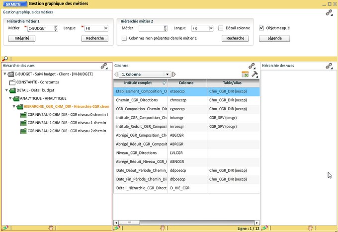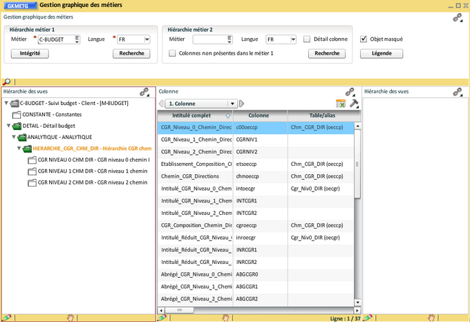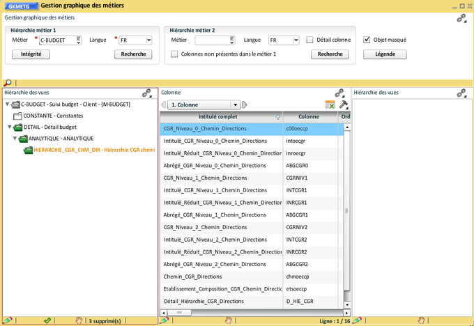 Comme pour les hiérarchies de CGR, les colonnes peuvent être réorganisées, renommées, masquées, supprimées. Quelques exemples d'actions qui peuvent être menées :