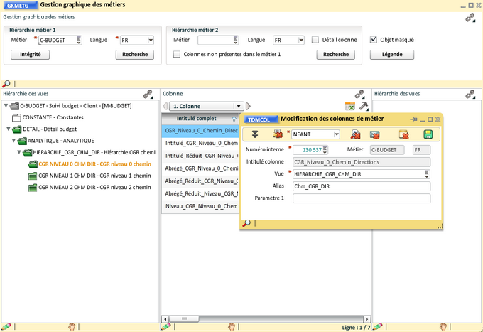 Choisir le traitement "Modification des colonnes de métier" ;