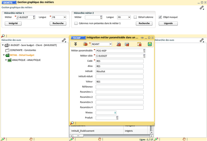 De le même manière que pour les compositions analytiques, il existe un métier paramétrage qui transcrit les hiérarchies de postes. Il s'agit du métier "Hiérarchie Postes (P)".