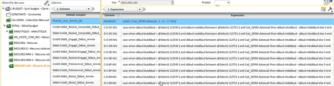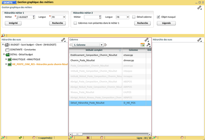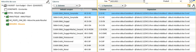 Dans la vue "Hiérarchie poste chemin Résultat", Suppression des colonnes déjà existant dans la vue "Détail budget" :
