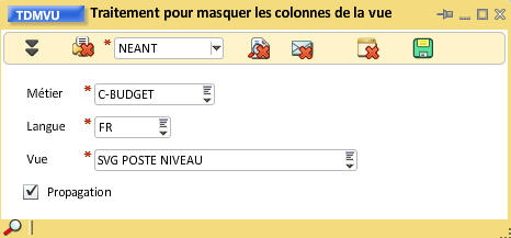 Une fois ces déplacements effectués, il est possible de masquer l'ensemble des colonnes de la vue "Sauvegarde Poste Niveau" :