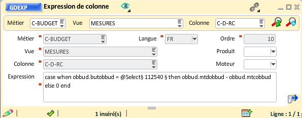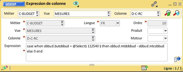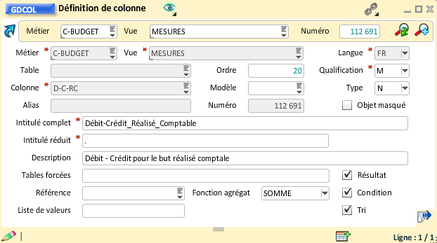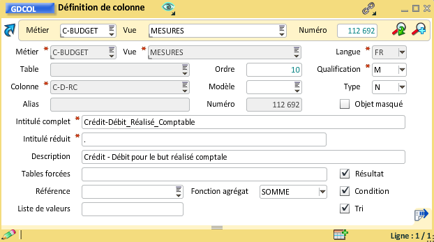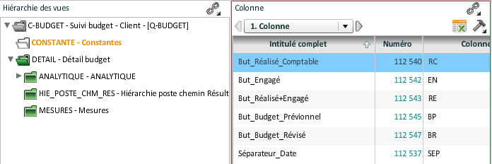 Il faut dans un premier temps noter le numéro interne de la colonne "But_Réalisé_Comptable" qui va être utilisée pour créer l'expression de la colonne montant.
