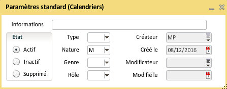 Pour créer les dates du calendrier dans le métier, il faut intégrer le métier paramétrable "Calendrier (P)" :