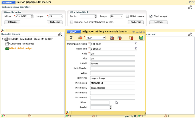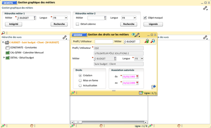 Cette documentation est destinée à vous expliquer comment créer un métier client simple à partir de ce métier. Nous déroulons ici la création du métier client "Suivi budget - Client' (C-BUDGET), ce métier client vous sera livré.