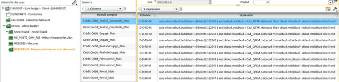 Et les colonnes associées aux différents buts de budget. Commençons avec les mesures associées au but "Réalisé comptable" :