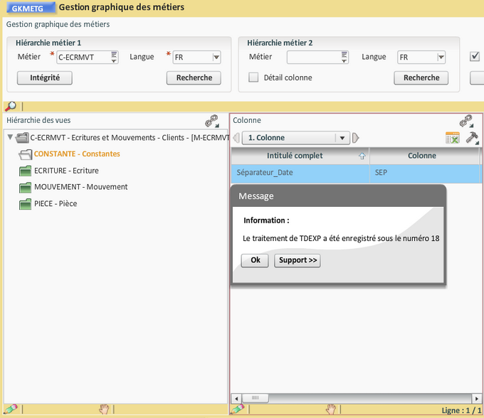 Dans cette partie, nous allons dérouler le processus de création du métier client "Ecritures et Mouvements- Client' (C-ECRMVT) que vous pourrez reproduire pour créer un nouveau métier client.