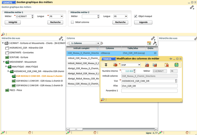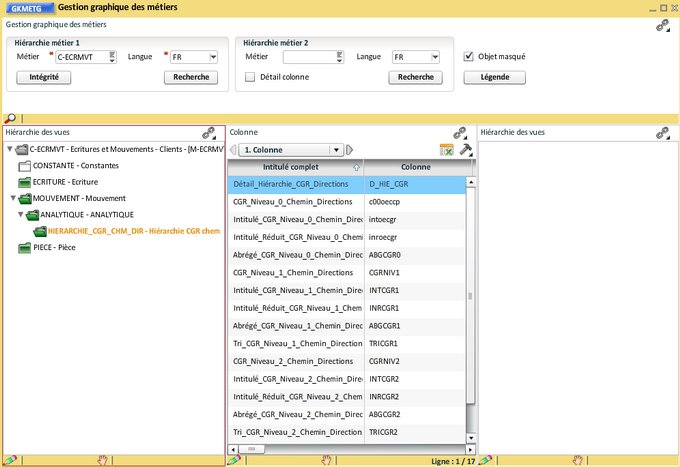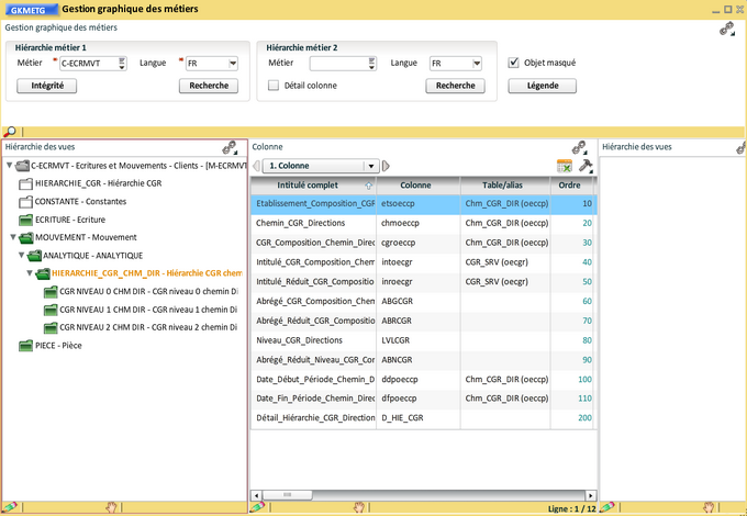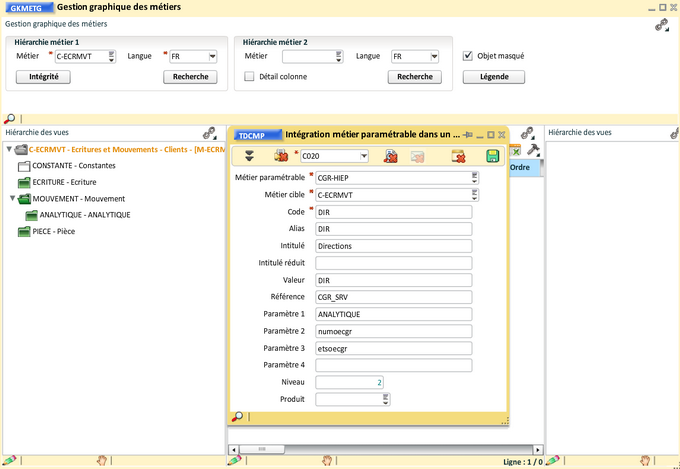 Nous allons intégrer le métier "Hiérarchie CGR (P)" de la façon suivante :