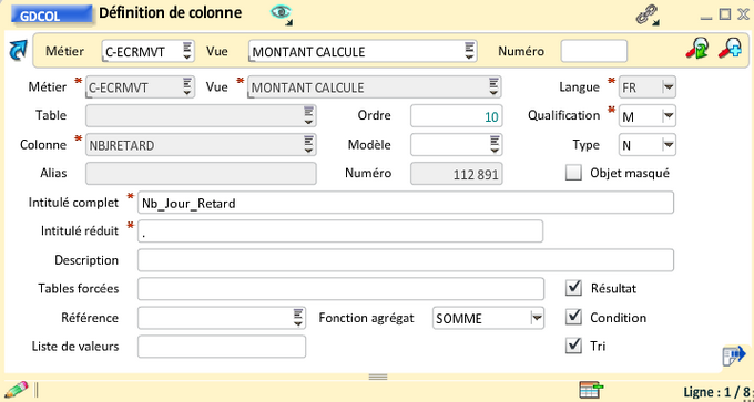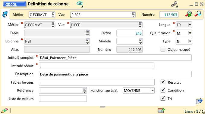Les zones "Intitulé" et "Intitulé réduit" (facultative) sont prises en compte dans les libellés des vues et des colonnes.