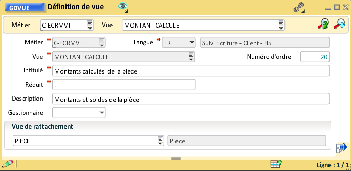 Nous allons créer une vue "Montants calculés de la pièce" :