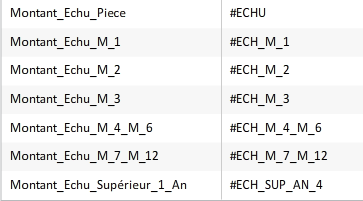Pour chaque colonnes, vous trouvez ci-dessous l'expressions de calcul associée (attention, elles peuvent être sur plusieurs enregistrements) :