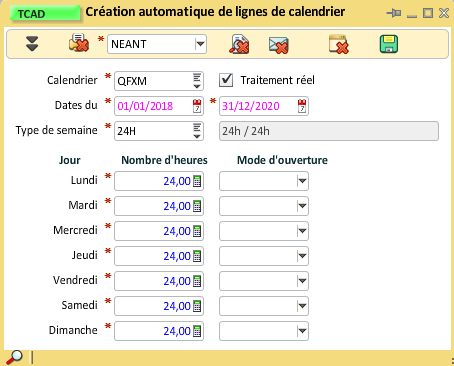 Le calendrier doit être défini dans la gestion des calendriers, dans notre exemple, son identifiant sera QFXM. S'il existe déjà, vous pouvez passer à la création des montants.