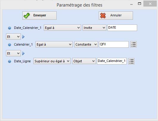 - le critère "Paramètre 1" représente l'identifiant du calendrier.
