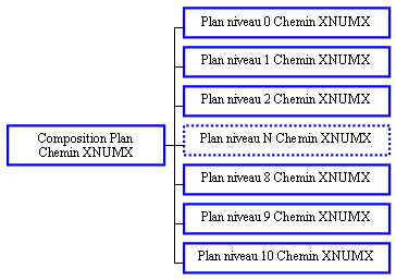 Informations sur les plans de compte du niveau 0 (Plan sommet) au niveau 10 de la composition de plans pour le chemin spécifié intitulé XINTX.