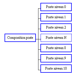 Informations sur les postes du niveau 0 (poste sommet) au niveau 10 de la composition de poste.