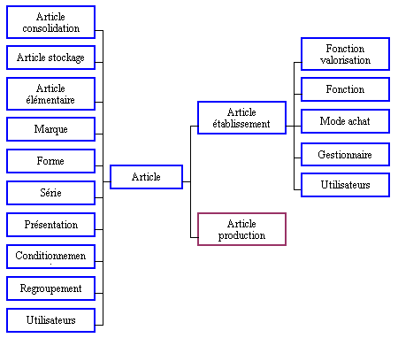Informations : Mode de production (Intitulés), Mode de contrôle (Intitulés), Article modèle (Intitulés), Article déterminant (Intitulés), Quantité économique, habituelle, minimale, Unité (Intitulés), Coefficients de conversion en unité de stock, Indicateur de réapprovisionnement automatique, Indicateur article utilisable en maintenance, Nombre de décimales, Arrondi (Intitulés), Dépôt (Intitulés), Emplacement (Intitulés).