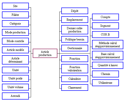 Ce métier permet donc d'obtenir toutes les informations relatives aux articles de production telles que le site, la filière, la catégorie, le dernier ordre de production, la fonction de valorisation, etc.