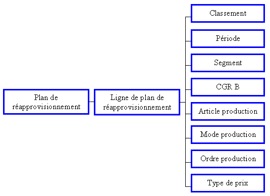 Vous trouverez ci-dessous la description de chaque vue du métier "Production Plans de réapprovisionnement" :