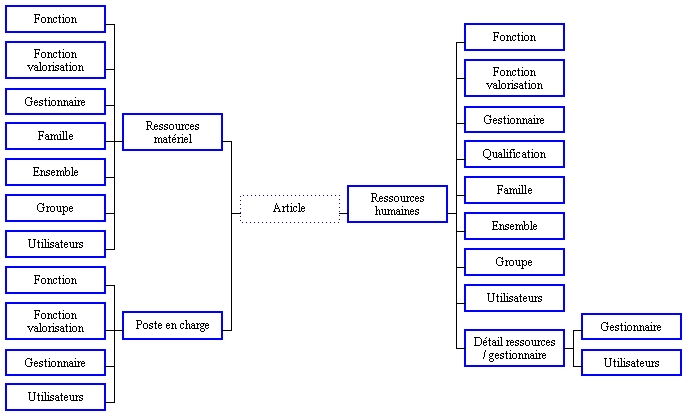 Informations : Etablissement, Ressource, Mnémonique, Intitulés, Fonction (Intitulés), Fonction de valorisation (Intitulés), Gestionnaire, Nom et prénom, Famille (Intitulés), Ensemble (Intitulés), Groupe (Intitulés).