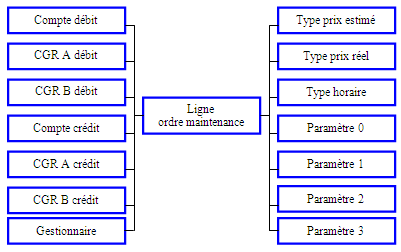 Informations : Opération de la ligne d'ordre de maintenance, Numéro de la ligne, Coefficient multiplicateur, Coefficient diviseur, Type de prix réel (Intitulés), Type de prix estimé (Intitulés), Prix réel, Prix estimé, Type d'horaire (Intitulés), Compte débit (Intitulés), CGR A débit (Intitulés), CGR B débit (Intitulés), Compte crédit (Intitulés), CGR A crédit (Intitulés), CGR B crédit (Intitulés), Flag de mise à jour des stocks, Date de mise à jour des stocks, Gestionnaire (Nom), Paramètres 0 à 3 (Intitulés), Date au plus tôt, Date au plus tard, Remise, Tarif, Devise.