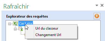 Le rafraîchissement des requêtes ne modifie pas l'URL du classeur. Pour les fichiers Excel Addin créés sans URL prédéfinie, c'est l'URL de connexion qui est prise en compte.