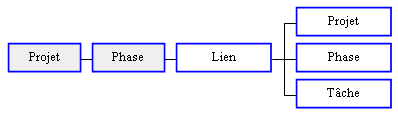 Remarque : Ne sont pris en compte que les liens tels que le genre est null (non généré), le numéro interne de tâche est égal à 0 (niveau phase) et l'entité du lien est PRO pour Projet/Phase/Tâche.
