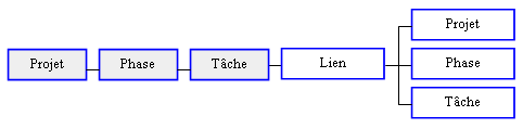 Remarque : Ne sont pris en compte que les liens tels que le genre est null (non généré), les numéros internes de la phase et de la tâche sont égaux à 0 (niveau projet) et l'entité du lien est PRO pour Projet/Phase/Tâche.