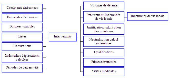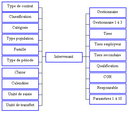 Informations : Potentiel horaire journalier, Potentiel horaire hebdomadaire, Potentiel horaire mensuel, Potentiel horaire annuel, Limite heures supplémentaires hebdomadaire, Autorisation écart, Ecart maximal autorisé, Indicateur saisie détaillée par jour, Classe (Intitulés), Type de période (Intitulés), Unité de saisie (Intitulés), Calendrier (Intitulés), Unité de transfert (Intitulés), Taux horaire, Taux horaire absences payées, Taux horaire heures supplémentaires, Taux horaire astreintes, Heures annexes, Durée heures annexes.