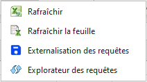 Le menu donne accès aux différentes options de rafraîchissement, d'externalisation et de mise à jour :