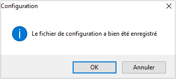 Le bouton Enregistrer permet de figer la configuration et affiche le message ci-dessous.