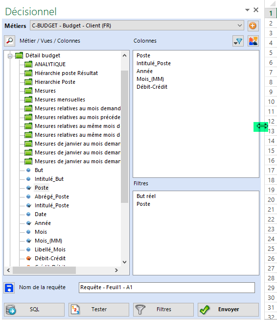 Il est alors indispensable d'appliquer la nouvelle numérotation des colonnes aux requêtes créées par Excel Addin.