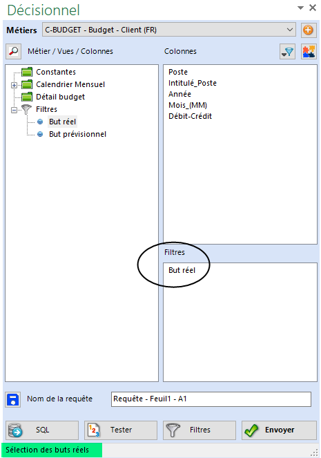 Le filtre prédéfini "But réel" va s'appliquer ;