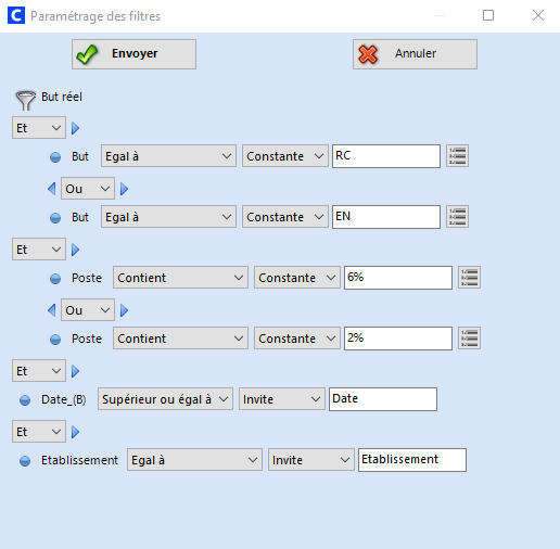 C'est-à-dire que, par exemple, pour l'établissement des lignes budgétaires, le select va lire toutes les lignes budgétaires (volume de données important) et non la table des établissements (nombre d'enregistrements limités). Il est donc recommandé de renseigner les numéros de liste de valeurs dans la gestion des Colonnes ou d'utiliser les informations dans les dossiers de structure pour poser les filtres.