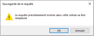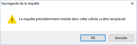 Lors de la mise à jour d'une requête, une confirmation vous sera demandée. Si elle est refusée, aucune sauvegarde des requêtes ne sera réalisée.