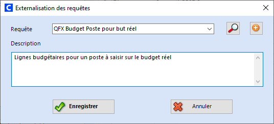 Le bouton Enregistrer permet la sauvegarde de la requête en base de données.