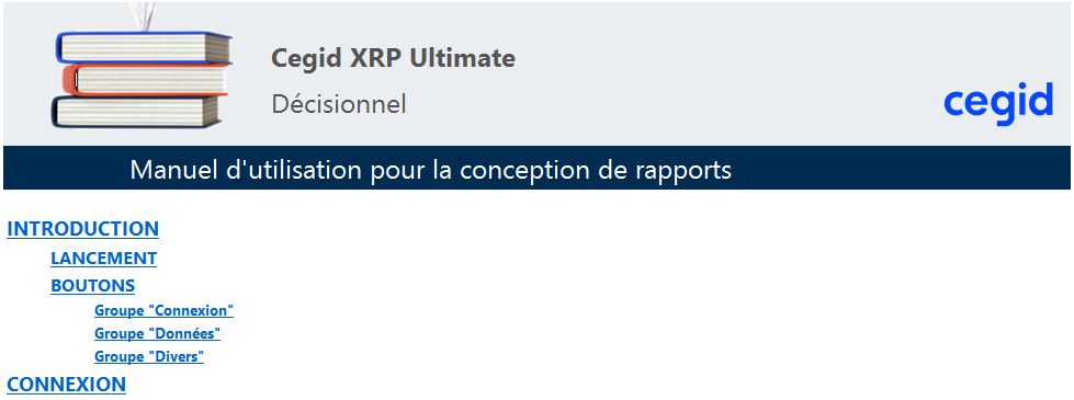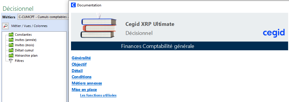 Lorsque le panneau Décisionnel est actif sur un rapport standard Cegid (pré-configuré), le document relatif à la constitution de ce rapport sera affichée.
