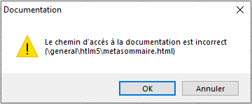Ce message s'affiche lorsque le la documentation ne peut pas être affichée. Il s'agit d'un problème de droit d'accès ou de paramétrage. Contactez votre administrateur.