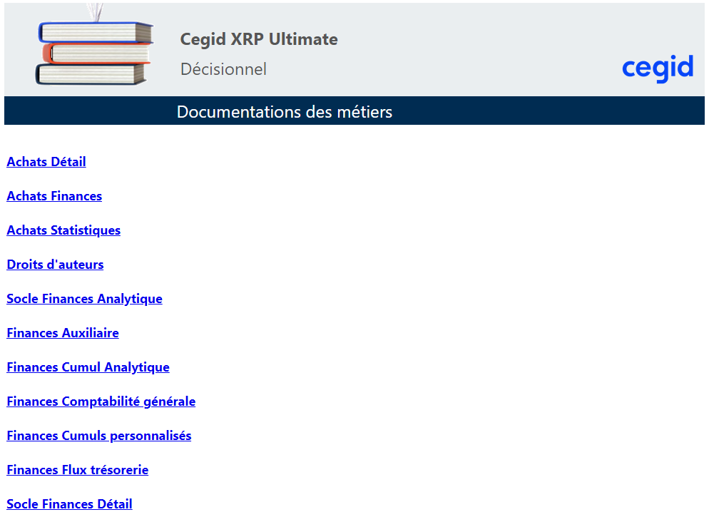 Lorsque le panneau Décisionnel est actif et dans le cas où l'utilisateur est sur un métier auquel n'est pas associée une documentation, la documentation s'ouvrira sur la page d'accueil :